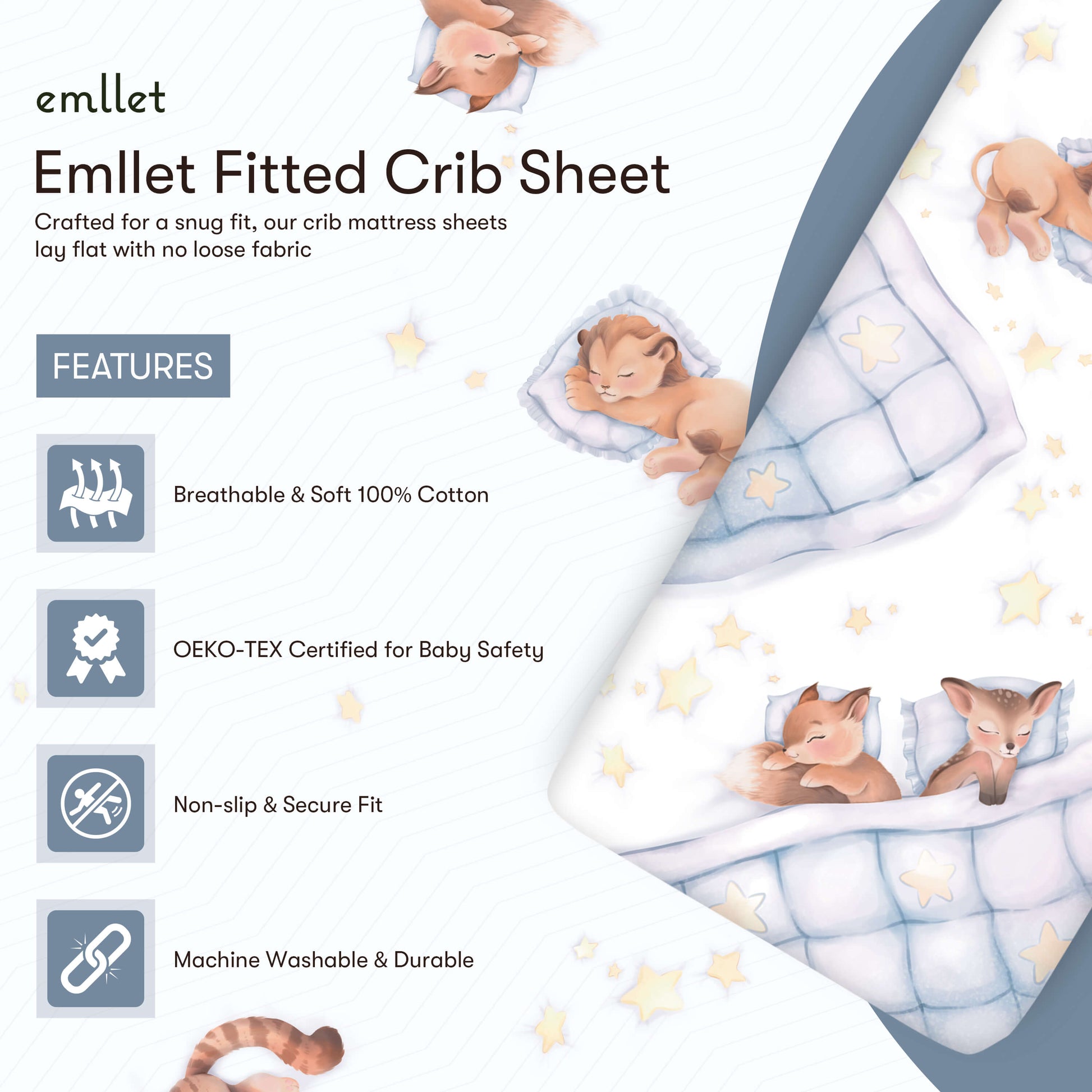 Emllet’s crib sheet is not only OEKO-TEX certified for safety but also designed for easy care. Machine washable and colorfast, it retains its softness and vivid design wash after wash, making life just a little easier for busy parents.